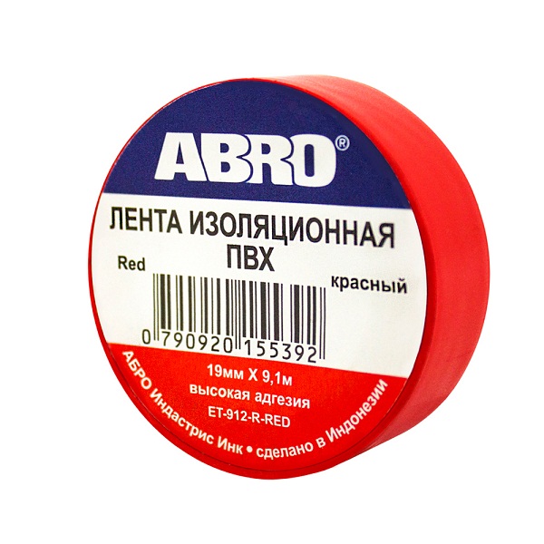 Изолента Abro ПВХ 19мм*9,1м красная