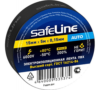 Изолента Safeline Auto ПВХ 15мм*5м черная