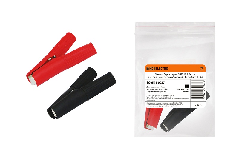 Зажим крокодил в изоляции TDM Electric 56мм 10А (в упак. 2шт)