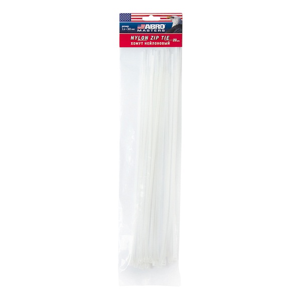 Хомут для кабеля Abro Masters 3,6*300мм (20штук/упак) белый