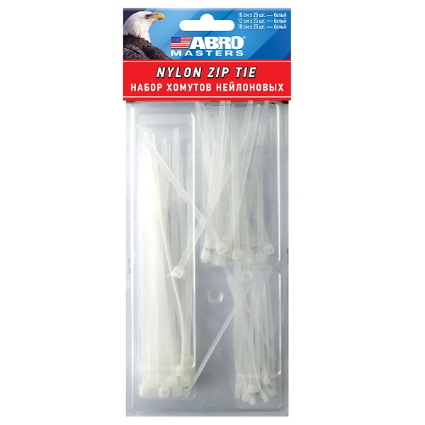 Набор хомутов для кабеля Abro Masters 100, 120, 180мм белый