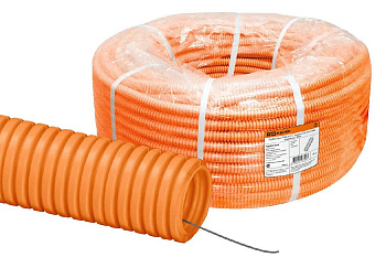 Труба ПВХ гофрированная 25мм с протяжкой TDM Electric оранжевая 75м