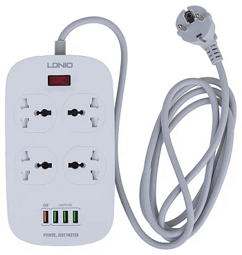 Фильтр сетевой Ldnio SC4407Q 2м 4 розетки, 4 USB