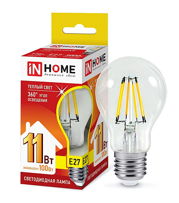 Лампа светодиодная In Home филаментная LED-A60-deco 11Вт 230В Е27 3000К 990Лм