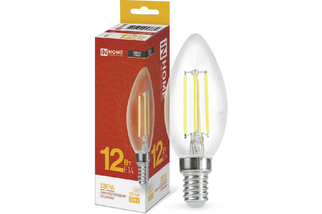 Лампа светодиодная In Home филаментная LED-Свеча-deco 12Вт Е14 3000К 1350Лм