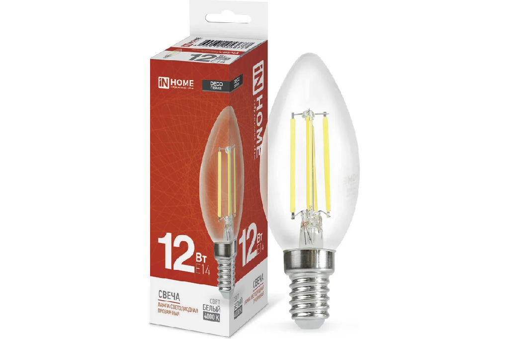 Лампа светодиодная In Home филаментная LED-Свеча-deco 12Вт Е14 4000К 1350Лм