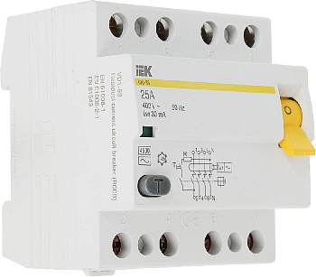 УЗО IEK ВД1-63 4Р 30мА 25А