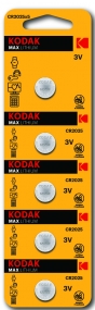 Батарейка литиевая Kodak Max Lithium (3V) CR2025-5BL отрывная лента