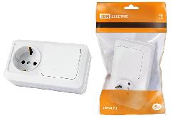 Блок комбинированный выключатель одноклавишный с розеткой с зазем. белый TDM Electric Ладога
