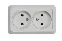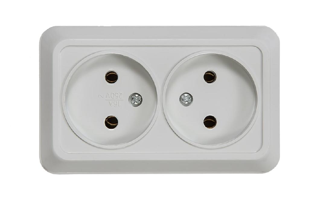 Розетка двойная наружная без заземления белая In Home Bolleto