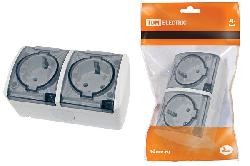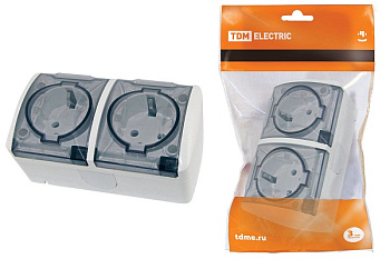 Розетка двойная наружная с прозрачной крышкой белая TDM Electric Селигер