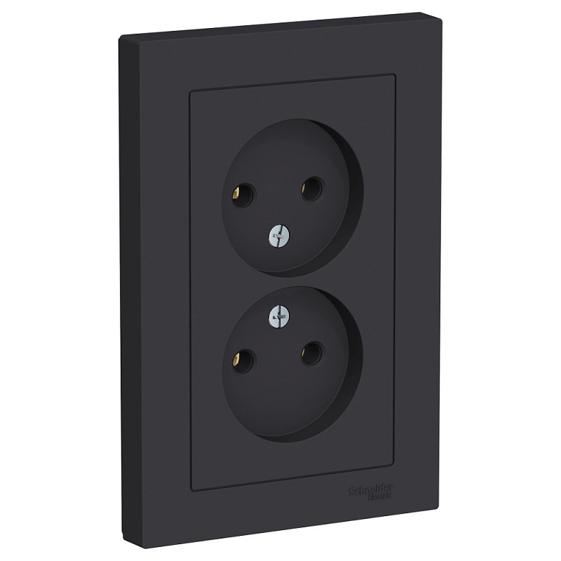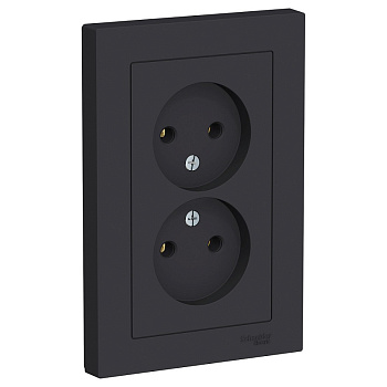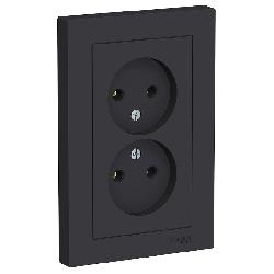 Розетка двойная внутренняя без заземления карбон в сборе AtlasDesign