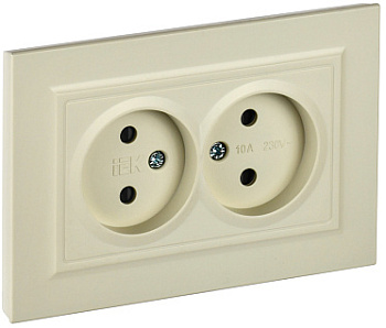 Розетка двойная внутренняя без заземления/с шторками в сборе бежевая IEK Brite