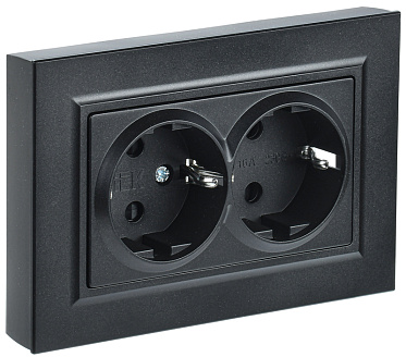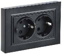 Розетка двойная внутренняя с заземлением/без шторок в сборе черная IEK Brite