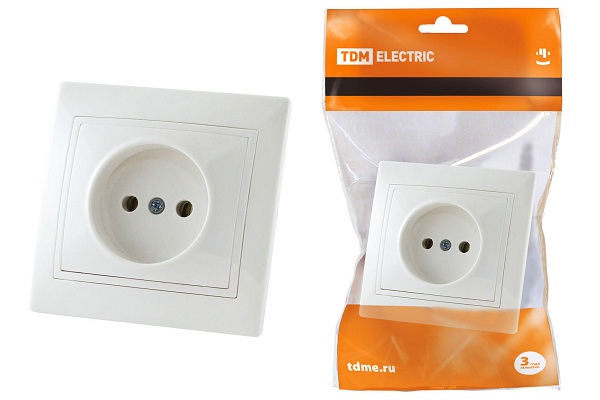Розетка одинарная внутренняя без заземления в сборе белая TDM Electric Таймыр