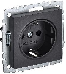 Розетка одинарная внутренняя с заземлением/без шторок черная IEK Brite