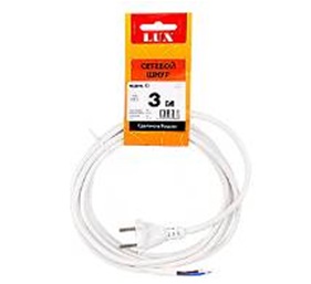 Шнур сетевой Lux V2 ПВС 2*0.75 с вилкой без заземления 3м белый