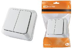 Выключатель накладной 2 клавиши белый TDM Electric Ладога