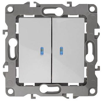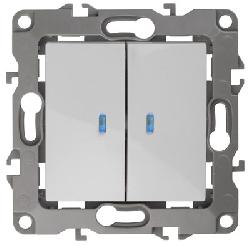 Выключатель встраиваемый 2 клавиши с подсветкой белый Эра