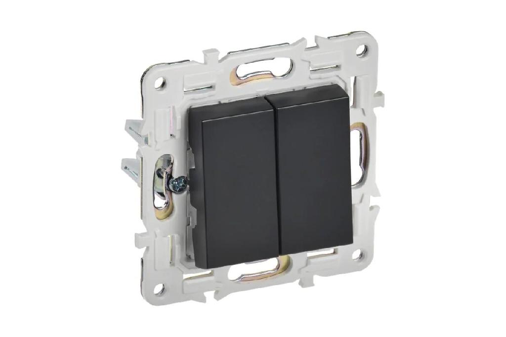 Выключатель встраиваемый 2 клавиши в сборе черный IEK Skandy
