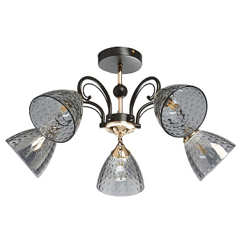 Винтажное сочетание коричневого и золотого цвета эффектно смотрится на потолке. Стеклянные плафоны вниз дымчатого цвета создают уютное освещение. Фактурные плафоны придают светильнику декоративность.Вы просматривали