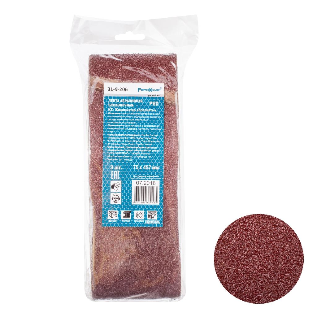 Лента бесконечная РемоКолор для ленточно-шлифовальных машин Р60, 75*457мм (в упак. 3шт)