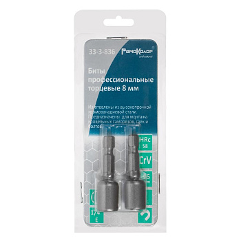 Биты РемоКолор professional с торцевой головкой, магнитные, CrV, Е 1/4", 8*45 мм (2 шт)