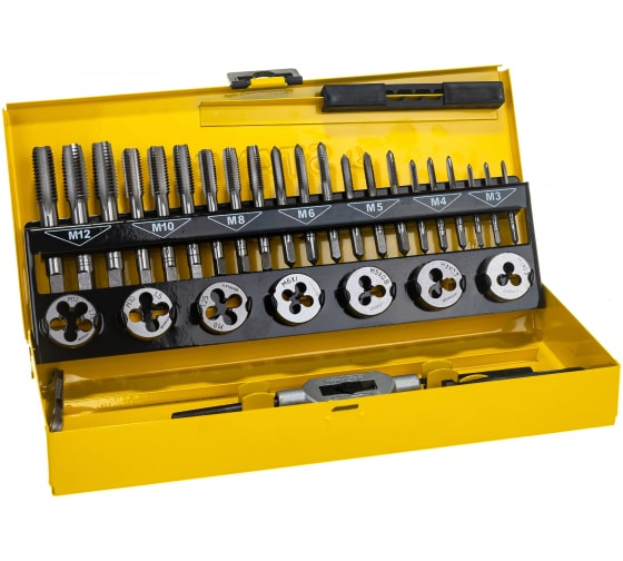 Набор метчиков и плашек STAYER MASTER 32 предмета создан для получения чистой внешней и внутренней резьбы. Метчики и плашки изготовлены из стали, которая отличается высокой прочностью и износостойкостью. Для удобства хранения и транспортировки комплект поставляется в прочном металлическом кейсе.Вы просматривали