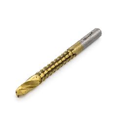 Сверло-фреза универсальное предназначено для сверления отверстий в листовых материалах из металла, пластмассы, древесины, фанеры. Изготовлено из инструментальной стали HSS и имеет нитридтитановое покрытие, снижающее трение во время работы, что обеспечивает длительный срок службы оснастки. Сочетает в себе функции сверла и фрезы. Сверлильной частью выполняют отверстие, а его расширение до необходимой формы и величины выполняют фрезой, которая является боковой гранью инструмента.Вы просматривали