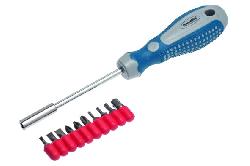 Отвёртка-держатель бит 1/4"х100, 10 насадок, биты 25 мм, РемоКолор professional