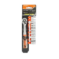 - Комплектация: трещотка с 72 зубцами, удлинитель на 100 мм, головки 4,5,6,7,8,9,10,11,12,13 мм.