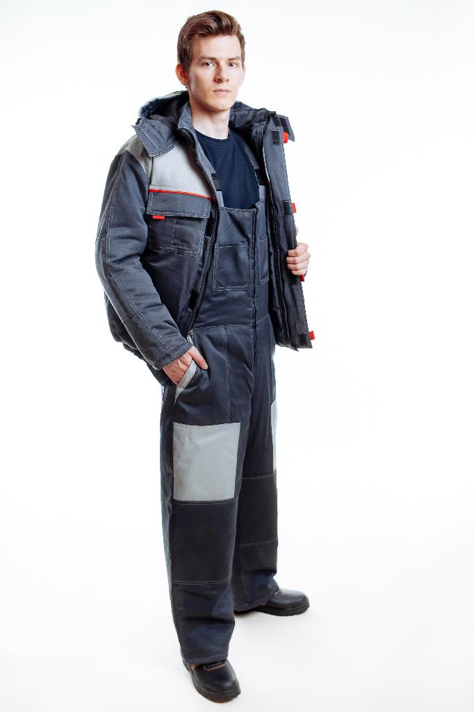 Костюм состоит из куртки и полукомбинезона. Куртка: укороченная с центральной застежкой на молнию и ветрозащитной планкой. имеется отстегивающийся регулируемый капюшон. Рукава с трикотажными манжетами, а также усиления в районе локтей. Полукомбинезон: с застежкой на молнию, регулируемыми бретелями, с эластичной вставкой по линии талии. Усиления на коленях и четыре функциональных кармана.Вы просматривали
