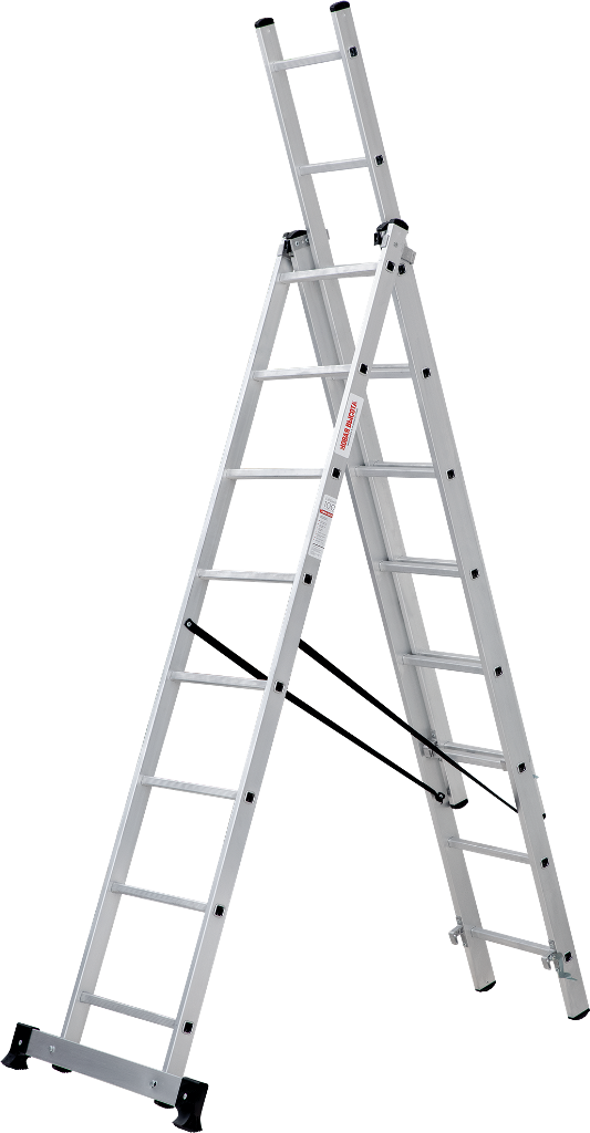 Универсальные лестницы Новая Высота - это лестницы, которые сочетают в себе сразу функции приставной лестницы, стремянки и двухсекционной лестницы. Эта лестница собрала в себе все преимущества односекционной и двухсекционной лестницы. Состоящая из трех частей она может использоваться в широком диапазоне высот. Имеется возможность использовать верхнюю секцию как отдельную небольшую приставную лестницу. Трехсекционная лестница данной серии имеет также пластиковые ребристые накладки в 4 местах прилегания к поверхности на все случае трансформации.Вы просматривали