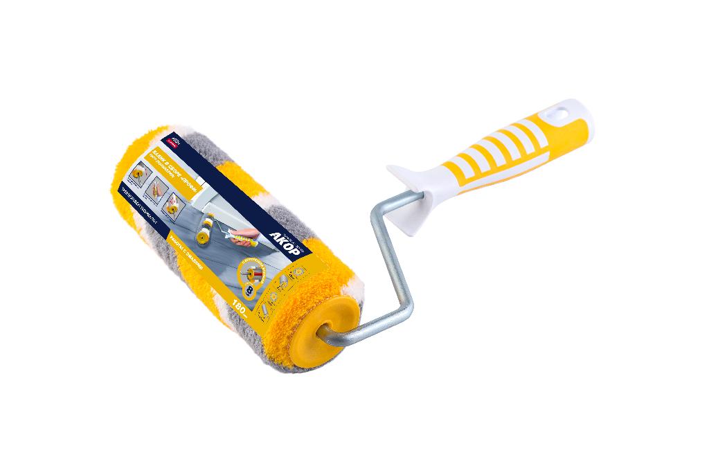 Валик Акор 180*48мм полиакрил 12мм, тигр бюгельная двухкомпонентная прорезиненная ручка