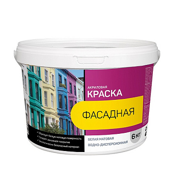 Краска в/д фасадная белая 6кг