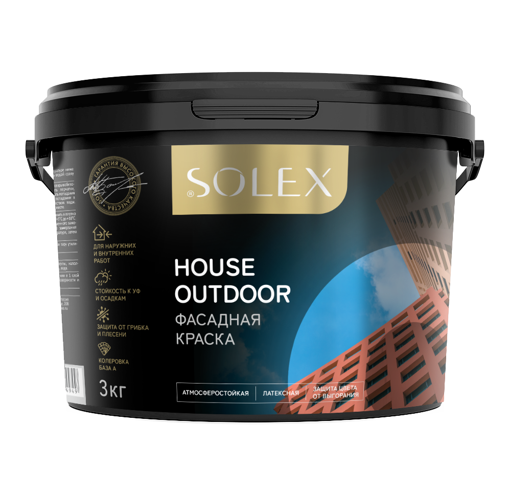 Краска в/д фасадная Solex House Outdoor белая 3кг