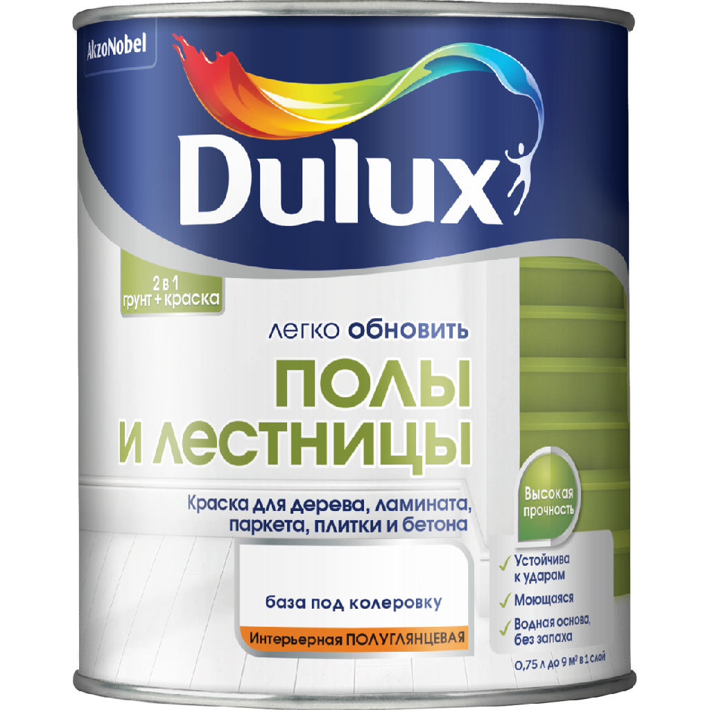 Краска в/д для полов и лестниц Dulux полуглянцевая BW 0,75л