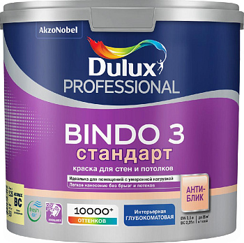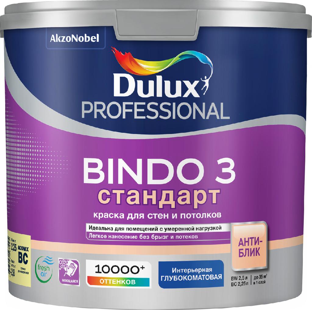 Краска в/д для стен и потолка Dulux Professional Bindo-3 глубокоматовая BC 2,25л
