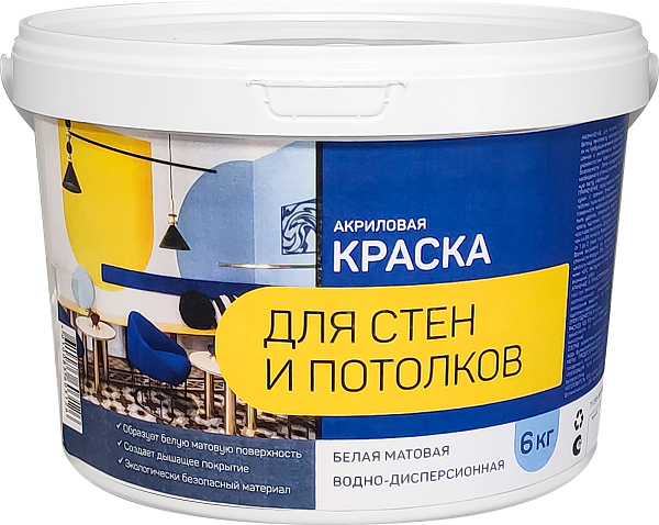 Краска в/д для стен и потолка матовая 6кг