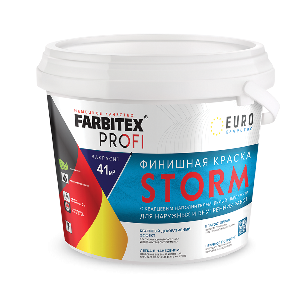 Краска финишная с кварцевым наполнителем "Storm" Farbitex profi белый перламутровый 1л