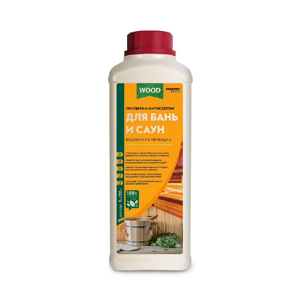 Пропитка-антисептик для бани и сауны Farbitex Profi Wood водоотталкивающая 0,9л