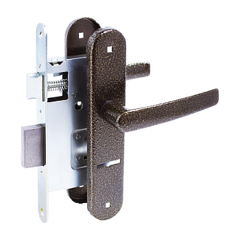 Замок врезной с ручками. Предназначен для установки в деревянные двери толщиной до 65 мм, правого и левого открывания. Стальной оцинкованный корпус, засов с вылетом 22мм. Межосевое расстояние 55мм. Удаление ключевого отверстия 55мм.Габаритный размер 130х85 мм.Ручки - сталь, алюминиевый сплав, покрытие - полимерная краска, крепление - стяжками. Сувальдный механизм запирания, 3 ключа в комплекте.Вы просматривали