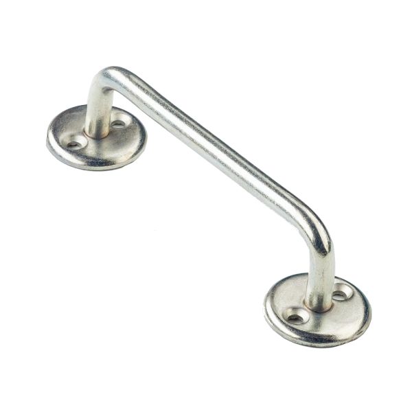 Ручка-скоба для деревянных окон и дверей. Материал - сталь, покрытие цинк. Расстояние между креплениями - 110 мм, диаметр накладок - 34 мм. Длина ручки - 100 мм, высота - 30 мм. Крепеж в комплект не входит.Вы просматривали