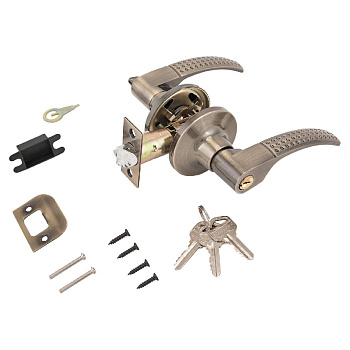 Ручка-защелка межкомнатная Стандарт 8510 ET AB с фиксатором и ключем бронза