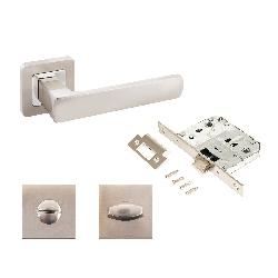 Комплект ручек для межкомнатных дверей Аллюр АРТ "Коломбо" c защелкой и фиксатором матовый никель