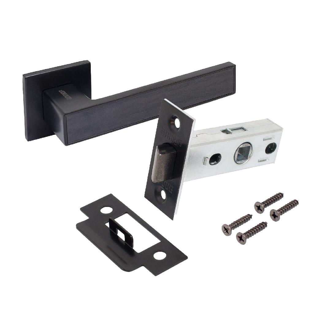 Комплект ручек для межкомнатных дверей Аллюр АРТ "Лана" c защелкой матовый черный