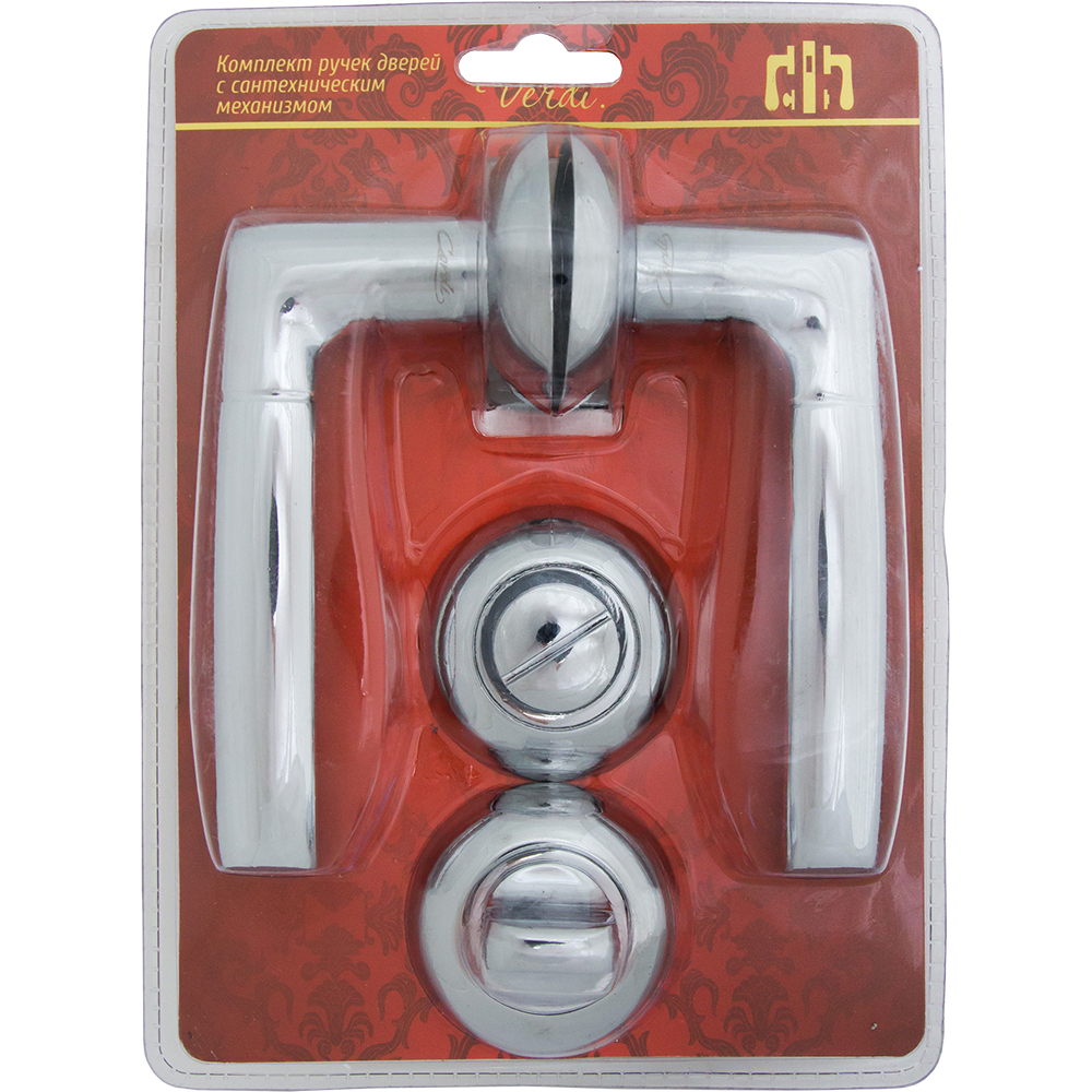 Комплект ручек для межкомнатных дверей Verdi с сантехническим механизмом L70, хром