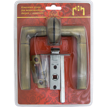 Комплект ручек для межкомнатных дверей Verdi с защелкой С45, бронза