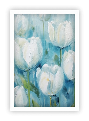 Постер в пластиковой раме Белые тюльпаны 21х30см