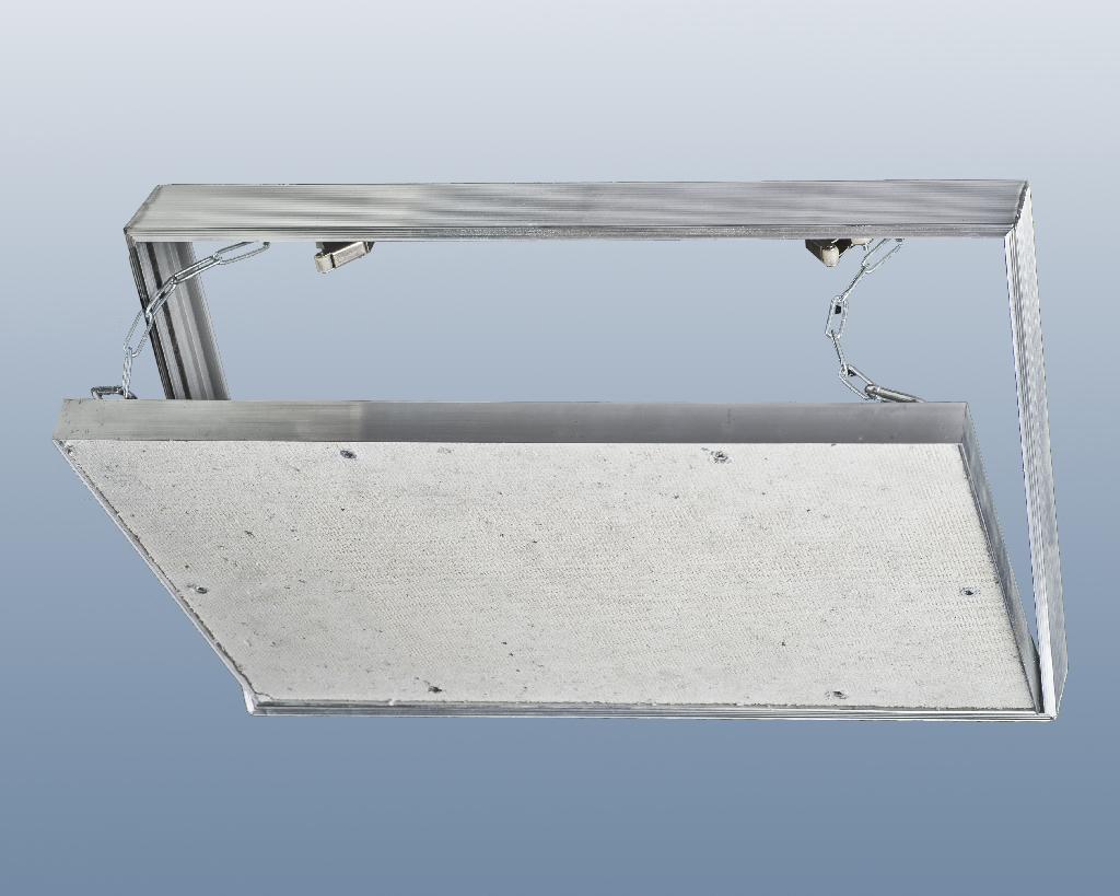 - механизм открывания: нажимной. Имеется нажимная защёлка. Дверца съёмная. Петля отсутствует. Поворот и открытие створки осуществляется вокруг оси, совпадающей с нижней стороной наружной рамы. Фиксация дверцы в наружной раме осуществляется за счёт зацепов в нижней части. Для предотвращения выпадения имеются удерживающие цепочки. Конструкция допускает выход плитки за габариты люка до 70 мм с каждой стороны, за исключением нижней.